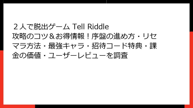 2人で脱出ゲーム Tell Riddle:リセマラや最強要素の真相を探る