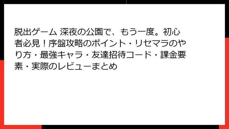 脱出ゲーム『深夜の公園で、もう一度。』リセマラ&最強要素ガイド:純粋パズルに潜む意外な深み