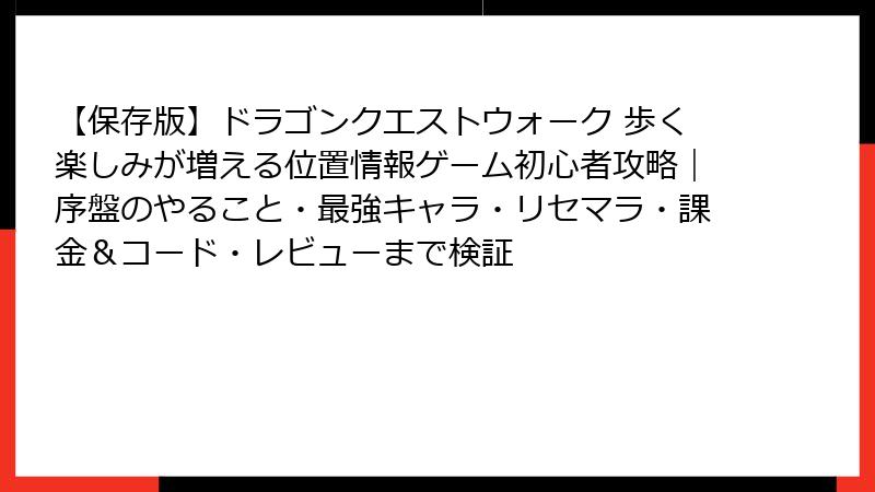 ドラゴンクエストウォークのリセマラと最強要素:スタートを強く、冒険を極める