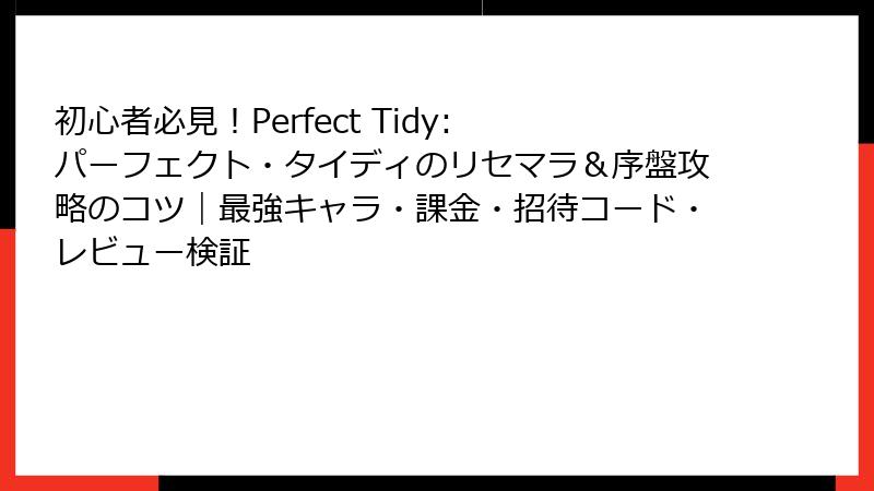 Perfect Tidy: パーフェクト・タイディ – リセマラの真相と最強要素を深掘り!
