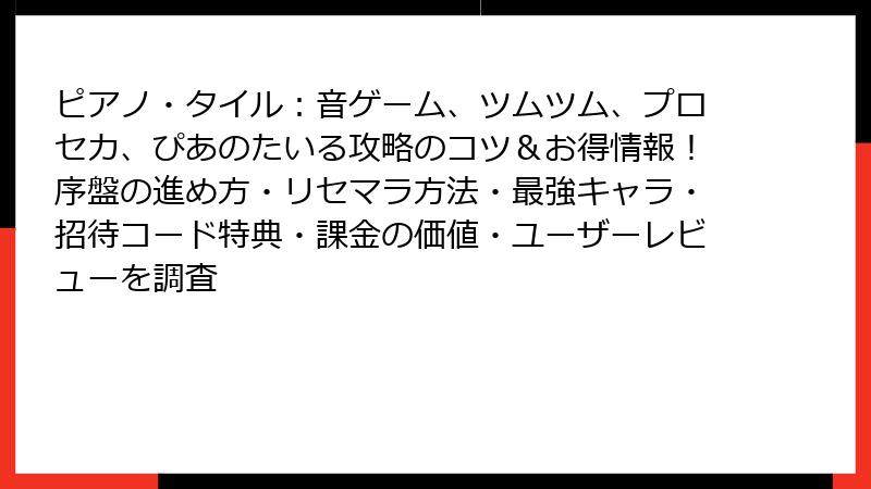 スマホゲームのリセマラと最強キャラ探訪!ピアノ・タイル、ツムツム、プロセカ、ぴあのたいるの深掘りガイド