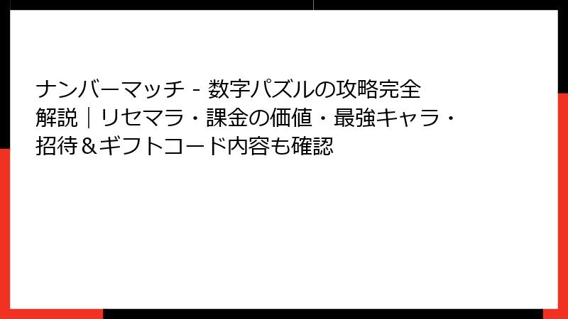 ナンバーマッチ – 数字パズル:リセマラと最強要素の真相を探る
