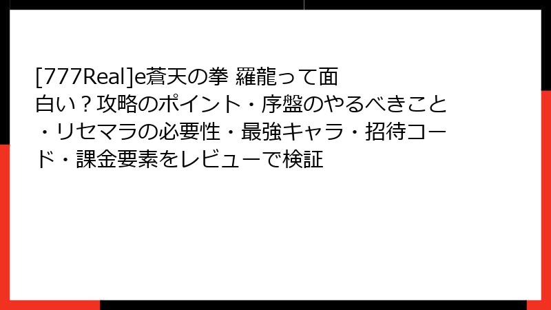いかがでしたか? e蒼天の拳 羅龍は、戦略次第で無限の爽快感が待っています。皆さんの一撃オーバー報告、楽しみにしています。次回は上級RUSH継続術をお届け予定。拳を磨いて、またお会いしましょう!