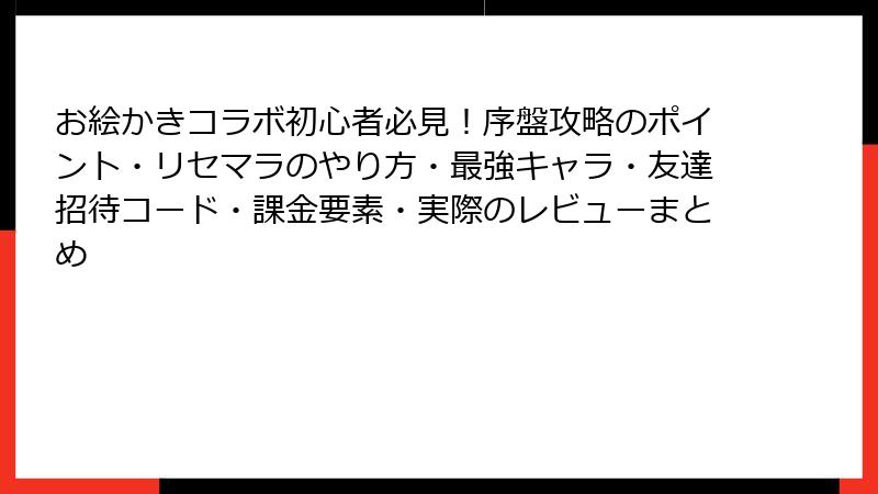 お絵かきコラボ:リセマラ要素と最強キャラの真相を徹底解剖