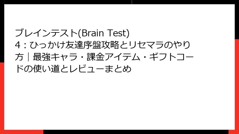 ブレインテスト(Brain Test) 4:ひっかけ友達 リセマラと最強要素の深掘りガイド