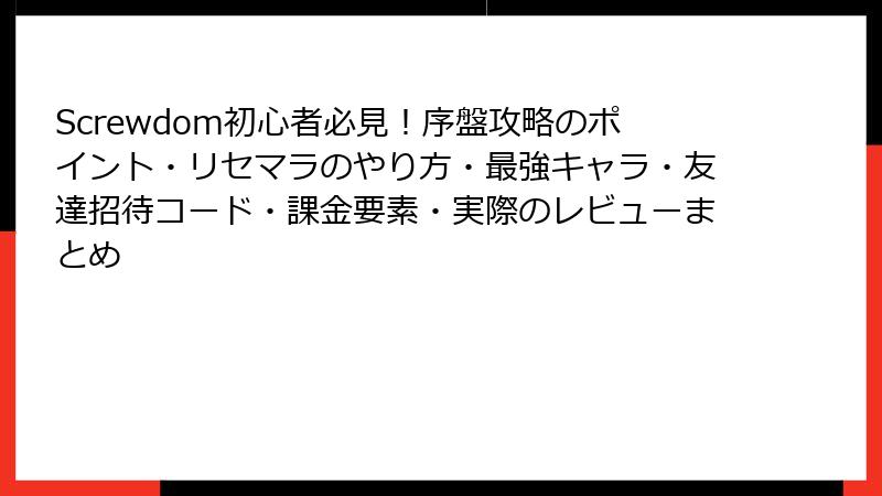 前回までの記事で『Screwdom 3D』のリセマラや最強要素を掘り下げましたが、今回はソーシャルな側面にスポットライト。スマホゲームの定番である友達招待コードやギフトコード(プロモコード)のような仕組みは、プレイヤーの結束を強め、無料でアイテムをゲットできる夢のようなシステムです。しかし、Screwdom 3Dに本格的なものが導入されているかは微妙なところ。調査の結果、公式の招待コードは存在しないものの、イベント限定のギフトコードや擬似的な報酬システムが散見されます。今回は、そんな仕組みの有無から利用メリット、注意点までを徹底解説。無課金勢の味方になるか、はたまた落とし穴か? 読み進めてみてください!