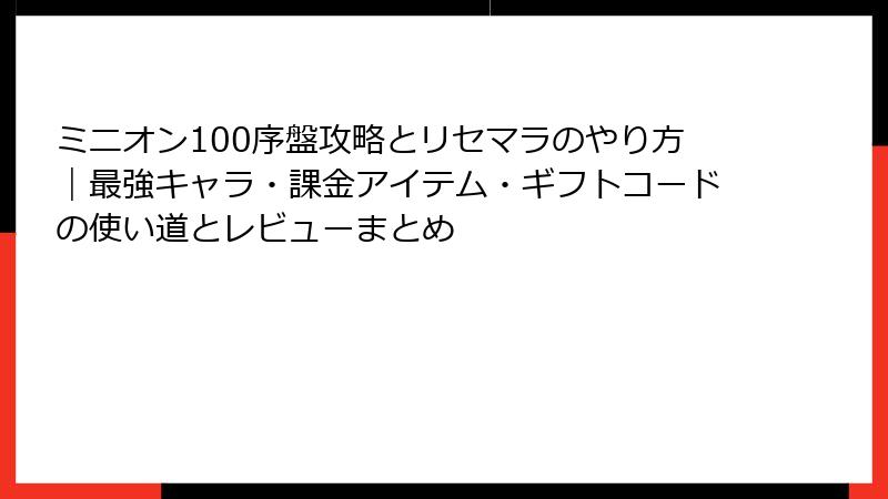 『ミニオン100』のリセマラと最強要素をマスターすれば、ミニオン軍団の指揮官として君臨間違いなし。運を味方に、成り上がりの物語を始めよう! あなたの引き運エピソード、コメントでシェアしてね。