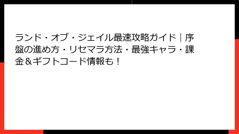 ランド・オブ・ジェイル:リセマラの極意と最強キャラを狙い撃ち!スタートダッシュのすべて