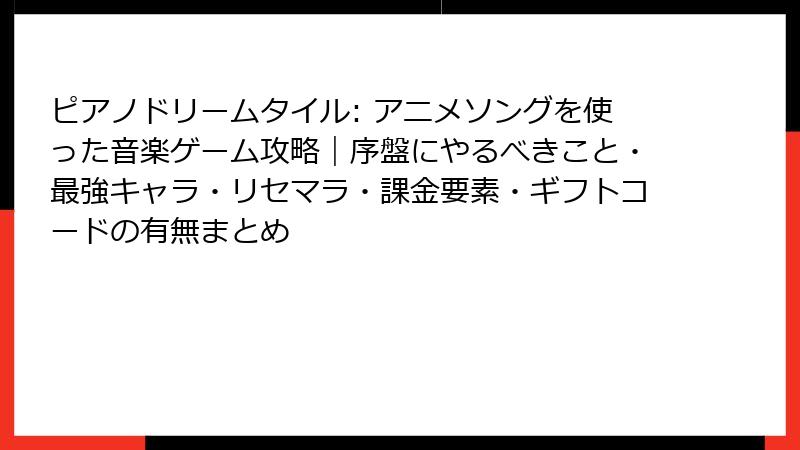ピアノドリームタイル: リセマラ要素と最強キャラ/カード完全ガイド