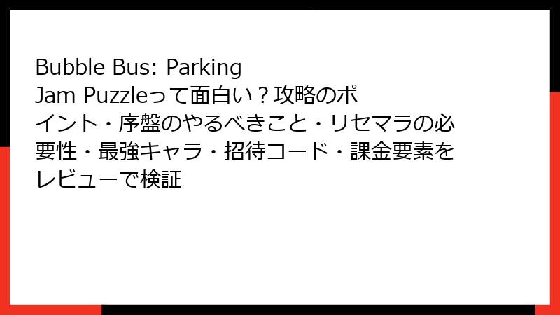 - Bubble Bus: Parking Jam Puzzleのリセマラと最強要素ガイド