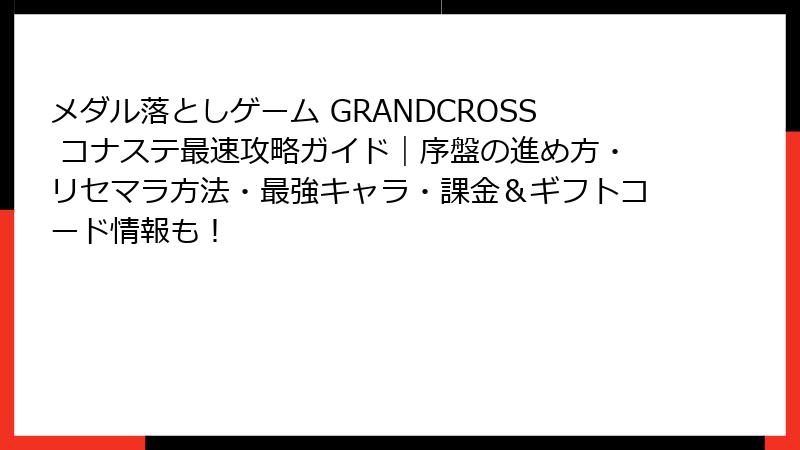 メダル落としゲーム GRANDCROSS コナステ:リセマラ完全ガイド&最強要素徹底解説