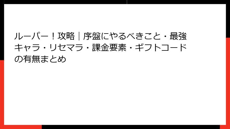 ルーパー! の課金ガイド