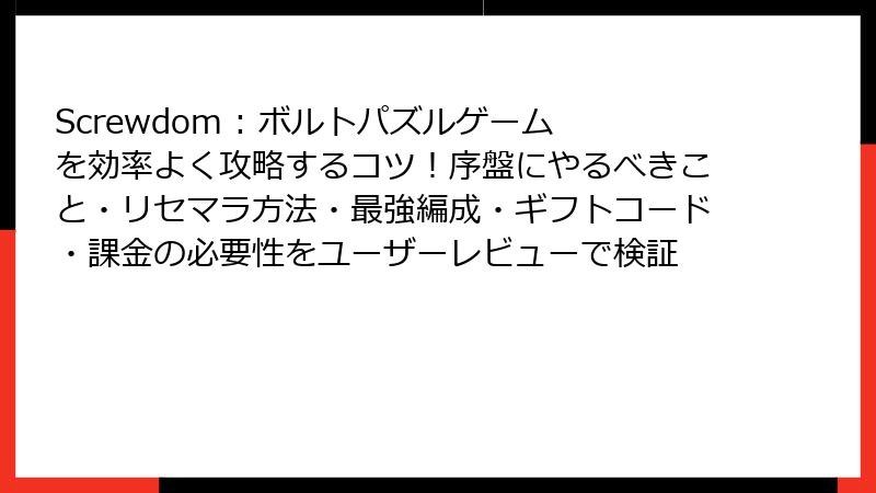 Screwdomは無課金神ゲー。広告を上手に回せば数百時間楽しめ、課金は「快適さの罠」。脳トレ重視で無料プレイを満喫しましょう!