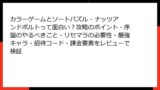 | スキル重視無課金 | 全クリ | 10-20時間 | 色優先・回転テクで広告最小限。 |