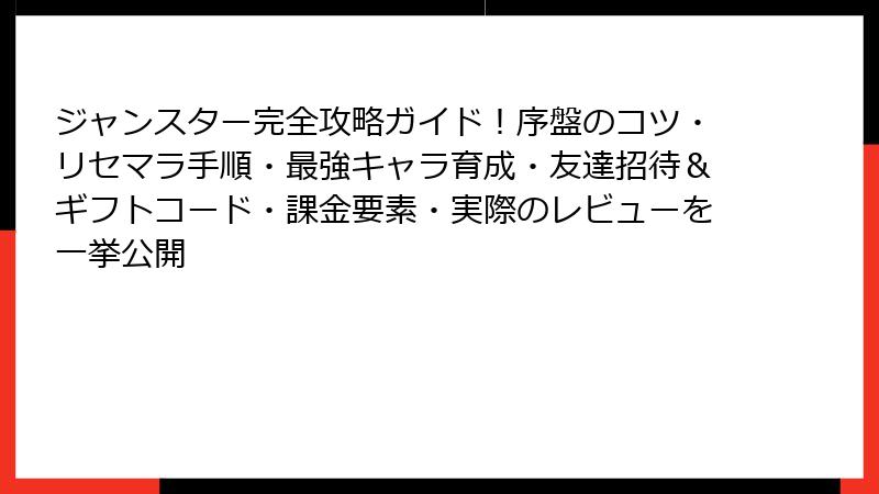 結論から:『ジャンスター』はリセマラ可能かつ超推奨!理由はリリース記念の200連無料ガチャ。チュートリアル後すぐに引けるため、アプリ削除やデータリセットで繰り返せます。所要時間は1回あたり5-10分と効率抜群。