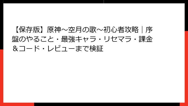 原神~空月の歌~リセマラ完全ガイド:最強スタートを切るための全手法と狙い目キャラ