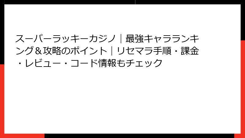 スーパーラッキーカジノ|最強キャラランキング&攻略のポイント|リセマラ手順・課金・レビュー・コード情報もチェック
