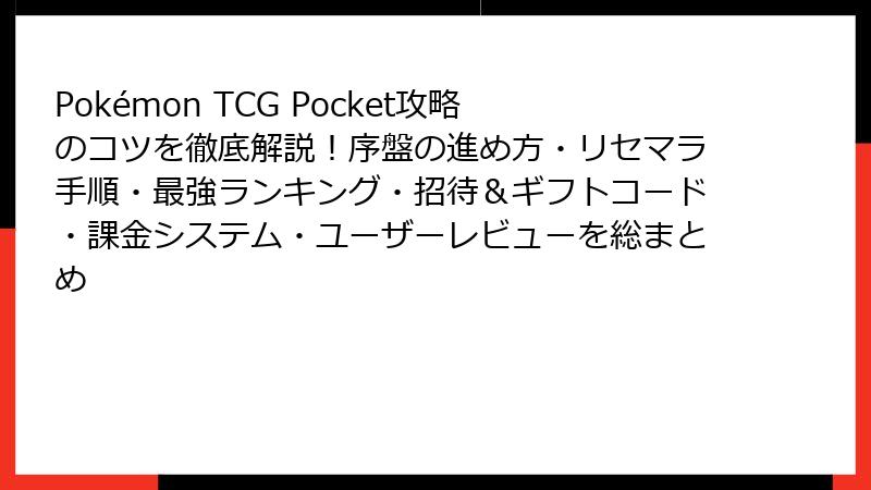 Pokémon TCG Pocket リセマラ完全ガイド:最強カードをゲットせよ!