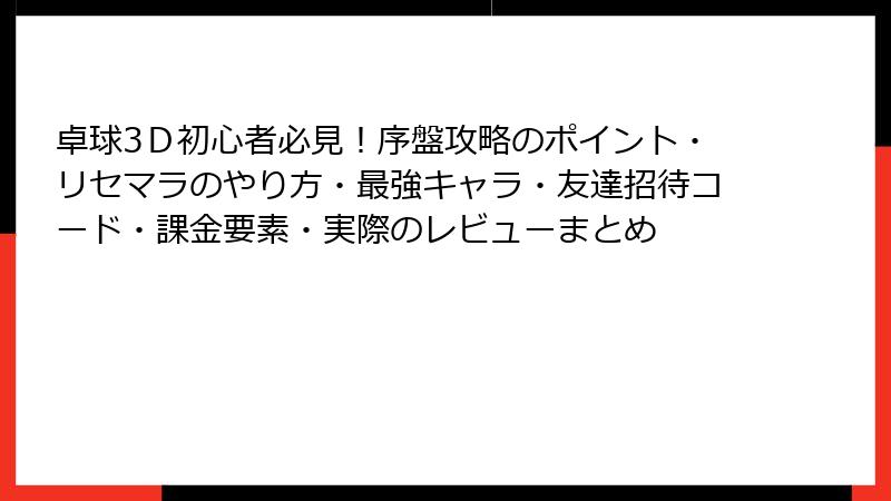 卓球3D:リセマラの有無と最強ラケット完全解説!無課金でも効率的に進める方法
