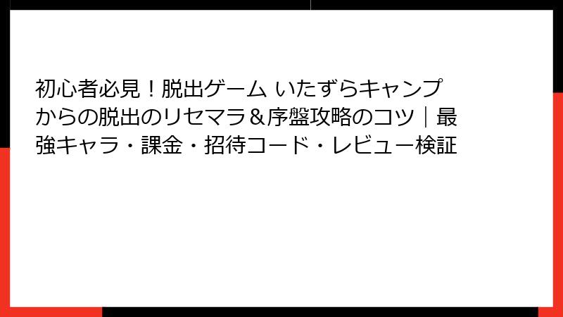 前回の攻略記事が好評だった「いたずらキャンプからの脱出」。今回はリセマラ要素の有無から手法、最強キャラやカードの詳細まで徹底解説!この脱出ゲームはガチャやリセマラが存在しない純粋なアドベンチャーですが、念のため最新情報を基に確認。効率的に楽しむための「仮想リセマラ」的なTipsも交えてお届けします。初心者必見の読み応え満載でお送り!