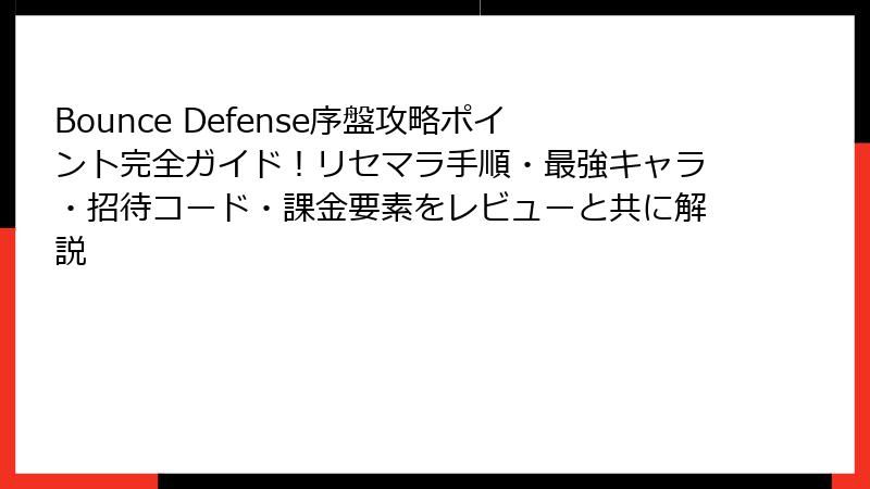 Bounce Defense序盤攻略ポイント完全ガイド!リセマラ手順・最強キャラ・招待コード・課金要素をレビューと共に解説