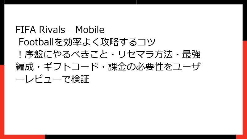 FIFA Rivals – Mobile Footballを効率よく攻略するコツ!序盤にやるべきこと・リセマラ方法・最強編成・ギフトコード・課金の必要性をユーザーレビューで検証