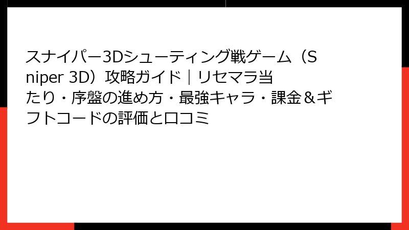 スナイパー3Dシューティング戦ゲーム(Sniper 3D)攻略ガイド|リセマラ当たり・序盤の進め方・最強キャラ・課金&ギフトコードの評価と口コミ