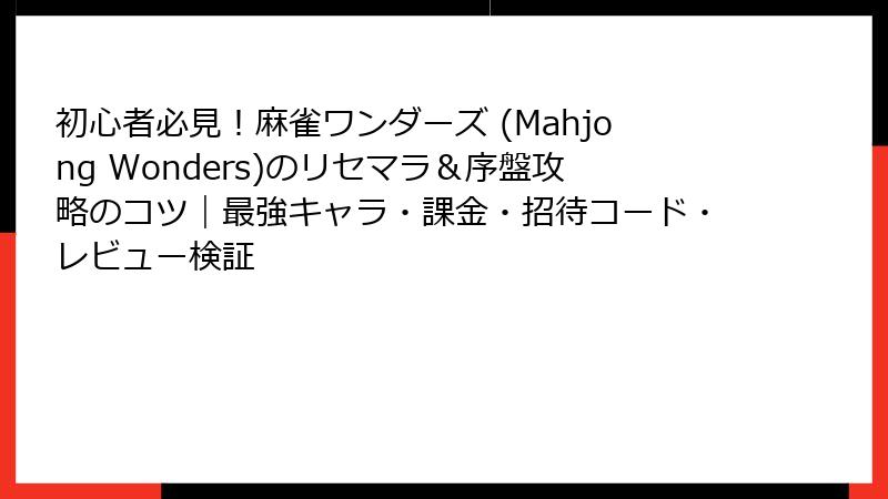 初心者必見!麻雀ワンダーズ (Mahjong Wonders)のリセマラ&序盤攻略のコツ|最強キャラ・課金・招待コード・レビュー検証