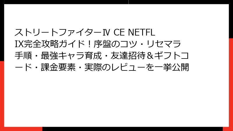 Netflixの格闘ゲーム『ストリートファイターⅣ CE NETFLIX』は、無ガチャ・無課金の純粋バトルが魅力。リセマラを期待する声も多いですが、実際のところはどうか? また、32キャラ中「最強」と呼ばれる存在は? 本記事で徹底検証! 初心者から上級者まで、勝率を爆上げする情報を網羅します。