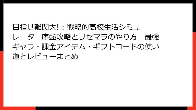 目指せ難関大! : 戦略的高校生活シミュレーター リセマラ&最強特性完全ガイド