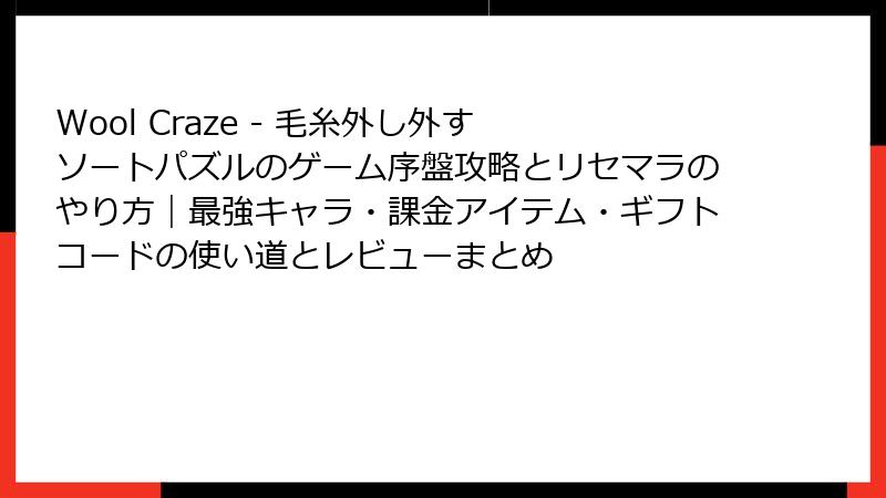 『Wool Craze』はリセマラや最強キャラの心配ゼロ。ブースターを賢く回せば、誰でも全ステージ制覇可能。脳トレ+癒しを求める人に最適です。今日からインストールして、毛糸の爽快解きほぐしを体感しよう!