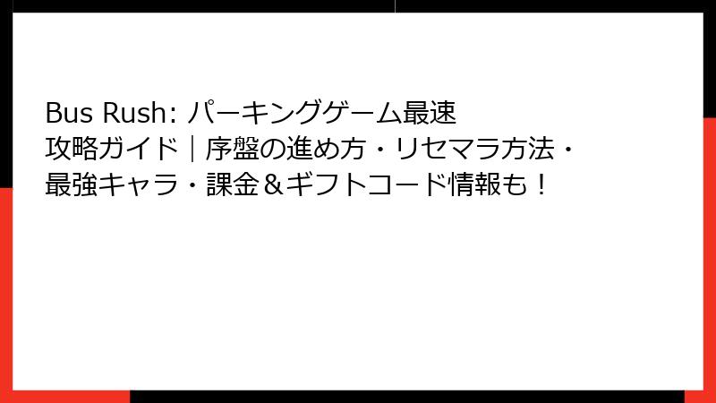 Bus Rush: パーキングゲーム リセマラ&最強要素完全ガイド!ガチャ真相から狙い撃ち車両まで徹底解説