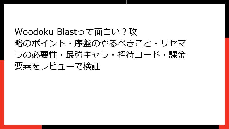 Woodoku Blastはガチャやキャラ育成のない純粋パズルゲームですが、それゆえにリセマラの必要性がなく、誰でも即高得点を目指せます。この記事では、リセマラ要素の真相から、代わりのスタートダッシュ術、そして「最強」と評されるブースター・アイテムの詳細を徹底解説。テーブルやリストで実践しやすくまとめ、序盤から上級者までスコア爆上げを実現しましょう。
