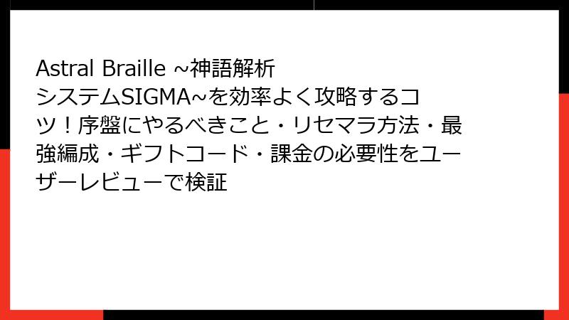Astral Braille ~神語解析システムSIGMA~ 課金要素完全検証&非課金攻略ガイド