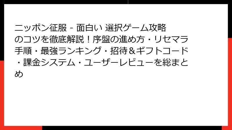 ニッポン征服 – 面白い選択ゲームの完全攻略ガイド