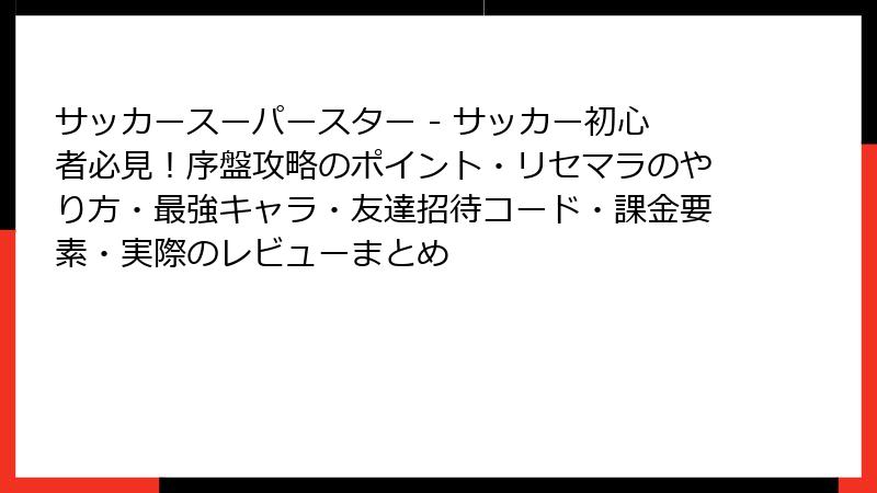 サッカースーパースター完全攻略ガイド!初心者からワールドクラスのスーパースターへ