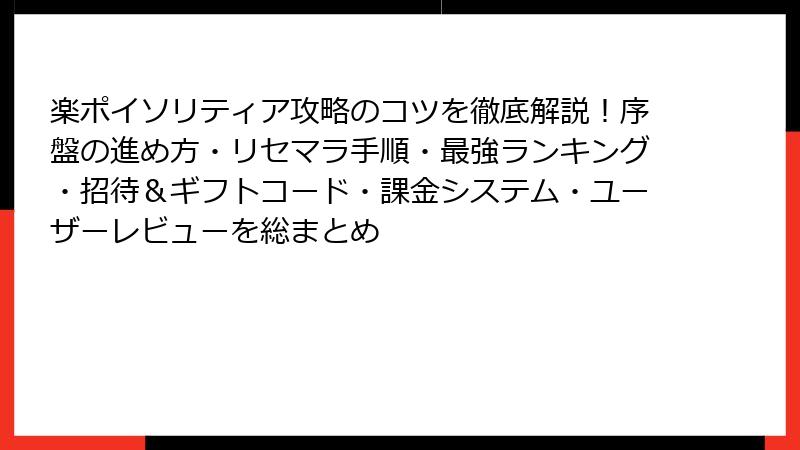 楽ポイソリティア攻略のコツを徹底解説!序盤の進め方・リセマラ手順・最強ランキング・招待&ギフトコード・課金システム・ユーザーレビューを総まとめ