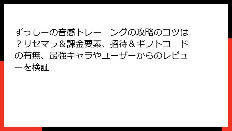 前回の攻略ガイドで大人気の「ずっしーの音感トレーニング」。今回はソシャゲ好きユーザーからのリクエストで、リセマラの有無や最強キャラ・カードについて深掘り!このアプリは純粋な音感鍛錬ゲームなので、ガチャ要素ゼロですが、それでも「最強」な進め方やおすすめ要素を徹底解説。リセマラ不要で即スタート可能、音感革命を加速させましょう!