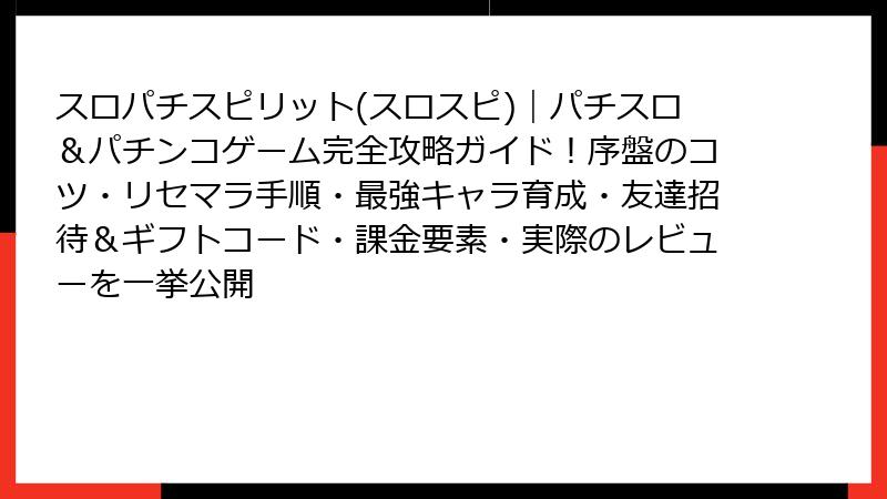 スロパチスピリット(スロスピ)|パチスロ&パチンコゲーム完全攻略ガイド!序盤のコツ・リセマラ手順・最強キャラ育成・友達招待&ギフトコード・課金要素・実際のレビューを一挙公開