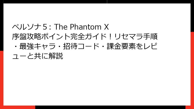 ペルソナ5: The Phantom X序盤攻略ポイント完全ガイド!リセマラ手順・最強キャラ・招待コード・課金要素をレビューと共に解説