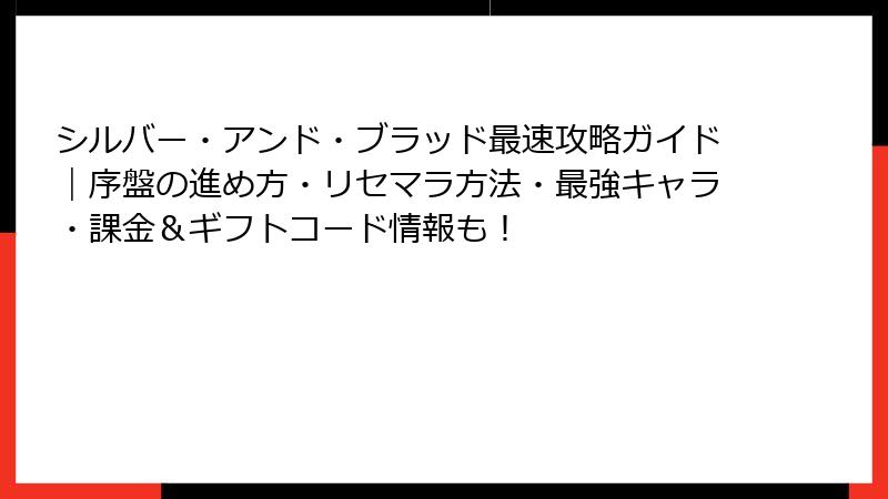 ゴシックヴァンパイアRPG『シルバー・アンド・ブラッド』(シルブラ)のリセマラは可能ですが、チュートリアルが長く面倒くさいことで有名。リリースから半年経った今も、序盤の戦力差が大きいためおすすめです。一方、最強眷属は環境変化が激しく、終焉のアイオナや水着ベラがぶっ壊れ級の評価。今回は最新Tierを基に、リセマラ手法から最強キャラの詳細まで徹底解説!