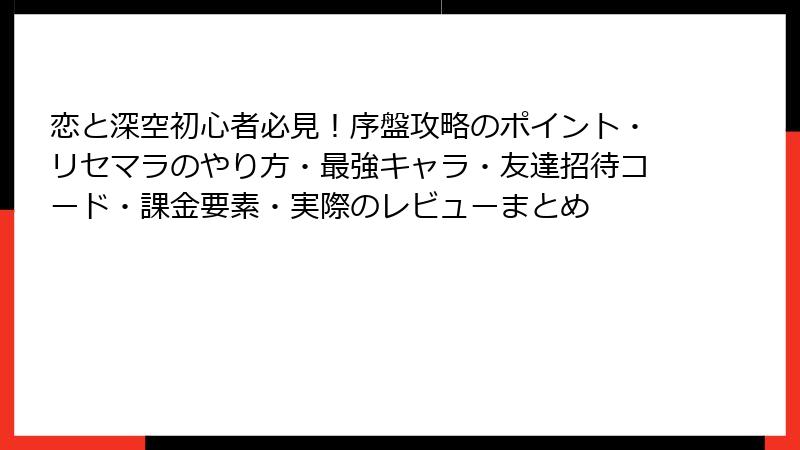大人気スマホゲーム『恋と深空』で序盤を有利に進めるリセマラのやり方から、2025年現在の最強思念カードまでをブログ記事形式で深掘り! 容量大・時間かかるリセマラは本当にやるべき? 最強セットでワンダラーを蹴散らす編成も公開。推しとの恋を最強スタートで楽しもう!