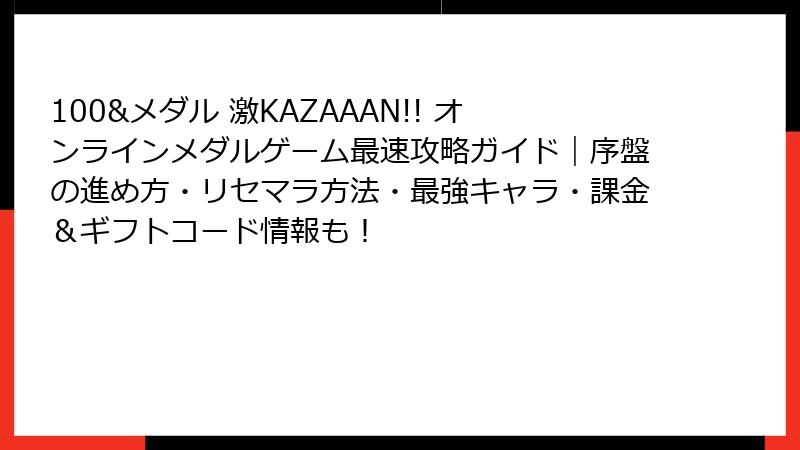 100&メダル 激KAZAAAN!! 招待&ギフトコード完全ガイド ~無料コイン2000GETのキーワード活用術~