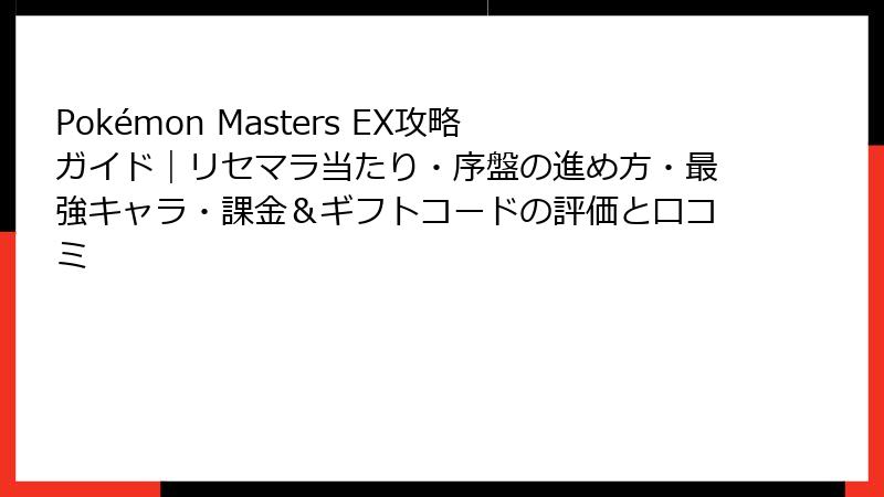 ポケモンマスターズEX(ポケマスEX)はリリースから6年経過した今も、ポケモンファンを魅了し続けるスマホアプリ。App Store平均評価4.63(40万超レビュー)、Google Playも高水準を維持。X(Twitter)では推しガチャの喜びや不満が飛び交う熱いコミュニティが活況です。今回はストアレビュー、攻略サイト、X投稿を徹底分析!無課金友好かガチャ地獄か、本音の評判をポジ/ネガ別に深掘り。