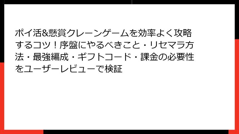 前回の基本攻略に続き、「ポイ活&懸賞クレーンゲーム」で気になるリセマラと最強要素を徹底解剖!このアプリはガチャやキャラ育成がなく、シンプルなクレーン操作が命。リセマラ不要の理由から、代わりに「最強効率」の立ち回りまで、ポイ活勢必見の情報をブログ風にまとめました。無駄な時間をかけず、即高報酬を目指しましょう!