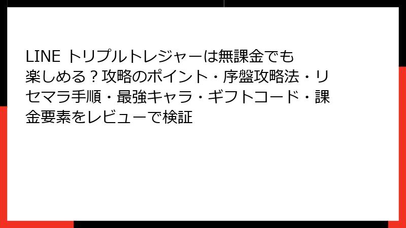 LINE トリプルトレジャーは、純粋なマッチングパズル+ポイ活ゲーム。ガチャやキャラ育成の要素が薄いため、従来のリセマラは不要ですが、初期報酬を最適化する代替手法が存在します。この記事では、リセマラの有無から代替テク、最強キャラ・カードの真相までを徹底解剖。ポイ活効率を最大化するための実践ガイドをお届け!