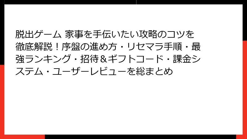 ハレコレの最新脱出ゲーム「家事を手伝いたい」がリリースされてから3ヶ月。App Store・Google Playで高評価を連発中!この記事では、ユーザー口コミから実況者の感想まで、実際の評判を徹底調査。良い点・悪い点をバランスよく解説し、プレイ前の参考に。ネタバレなしで読み応え満点でお届けします!