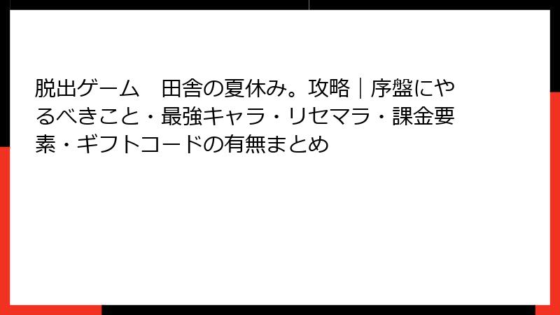 脱出ゲーム 田舎の夏休み。攻略|序盤にやるべきこと・最強キャラ・リセマラ・課金要素・ギフトコードの有無まとめ