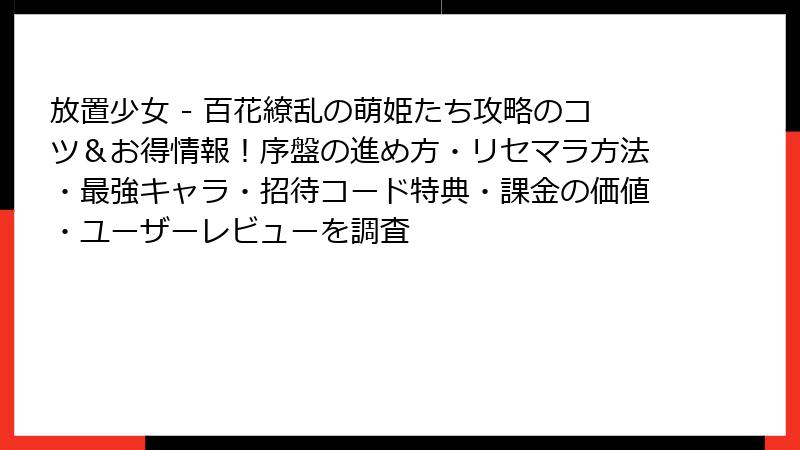放置少女 ~百花繚乱の萌姫たち~ リセマラ&最強キャラ完全ガイド