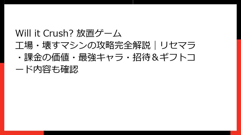 Will it Crush? 放置ゲーム工場・壊すマシンのリセマラ&最強要素完全ガイド